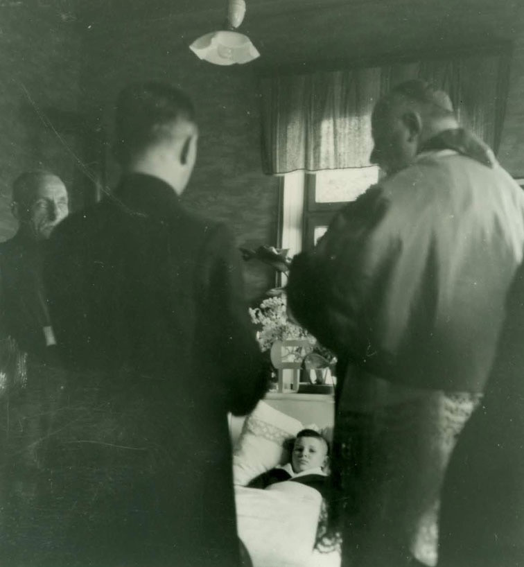 Clemens Augus von Galen spendet einem erkrankten Jungen das Firmsakrament, 16. Mai 1938.