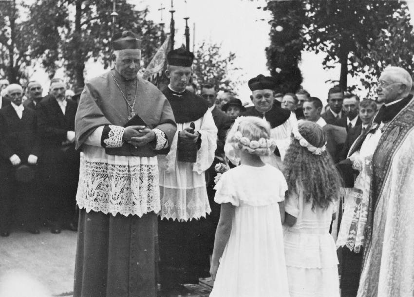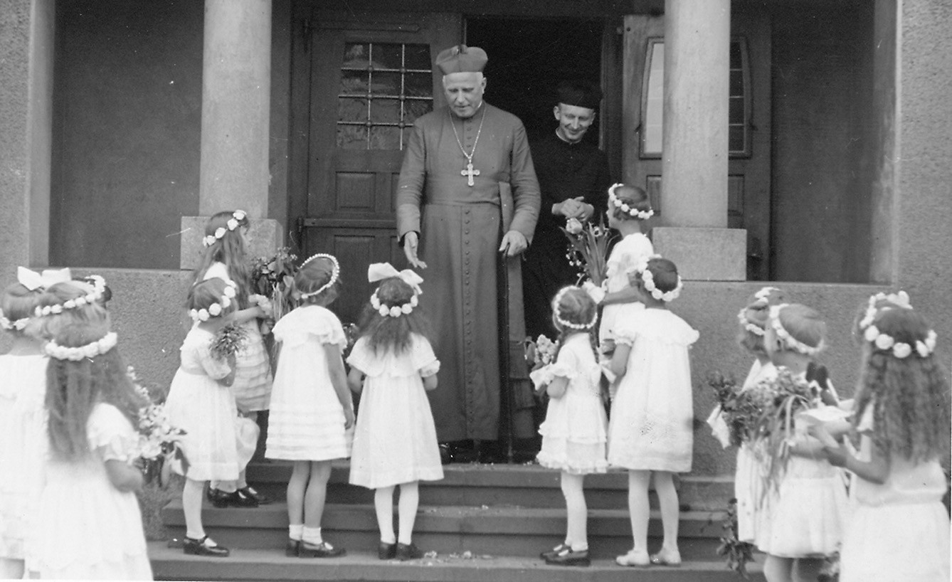 Clemens August von Galen bei einer Firmreise nach Erle am 19. März 1934.