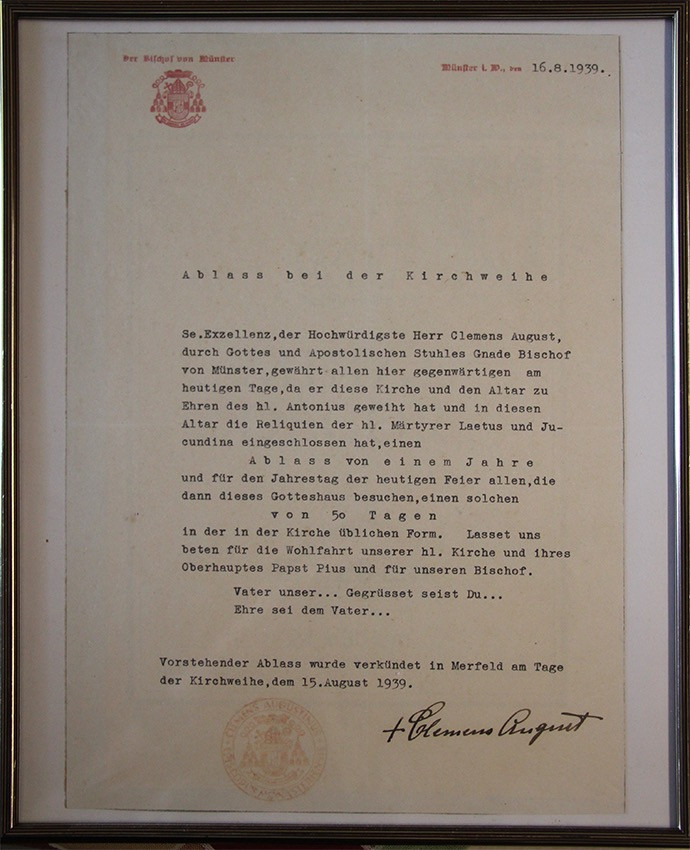 Ablass bei der Kirchweihe von St. Antonius in Merfeld (Ortsteil von Dülmen) am 16. August 1939.