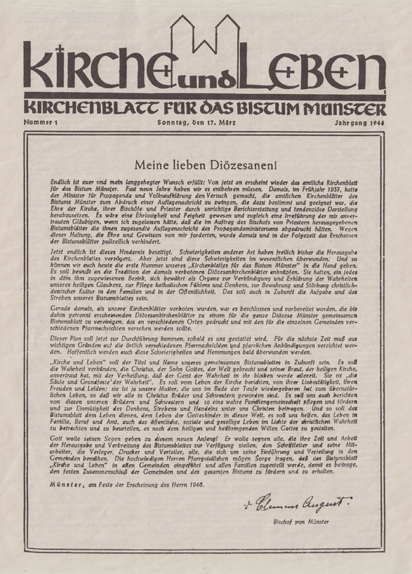 Auszug aus dem Kirchenblatt "Kirche und Leben" vom 17. März 1946