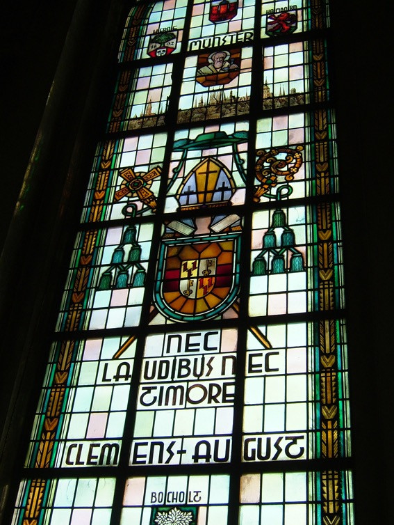 Das Wappen von Bischof Clemens August von Galen in einem der Süd-Fenster der Kerzenkapelle.