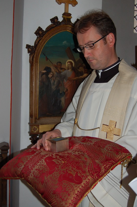 Reinhard Lettmann setzte am 28. Oktober 2007 eine Galen-Reliquie in ein Wandreliquiar in der Kevelaerer Beichtkapelle