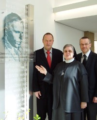 Im Franziskus-Hospital erinnert eine moderne Gedenktafel daran, dass hier Galen 1946 starb.