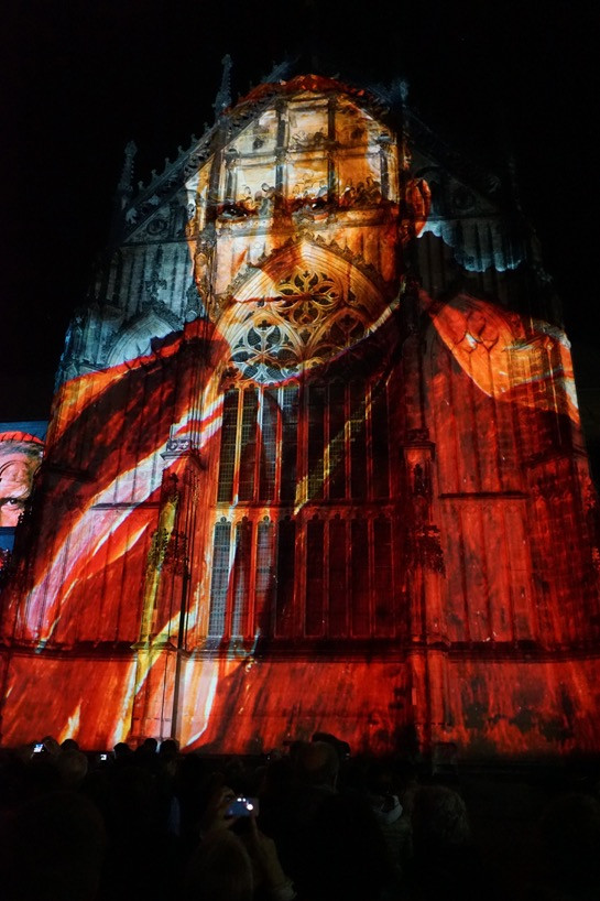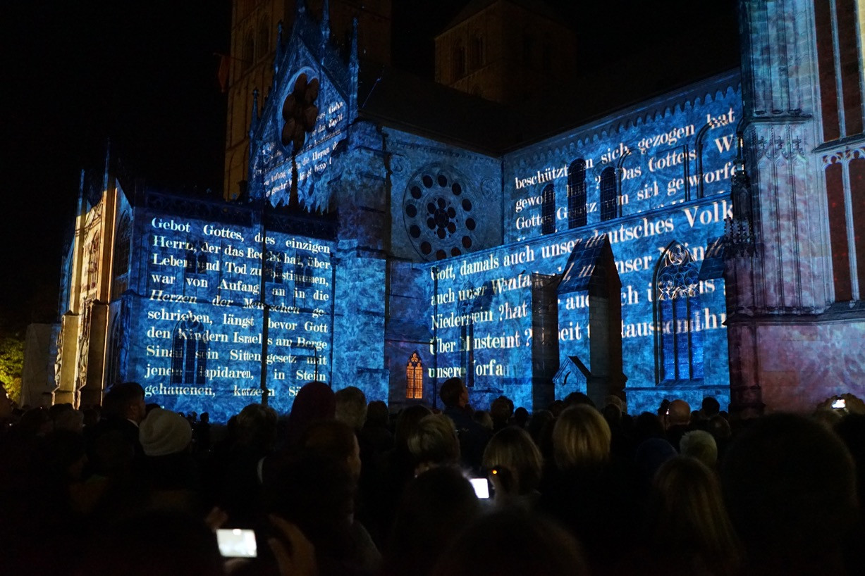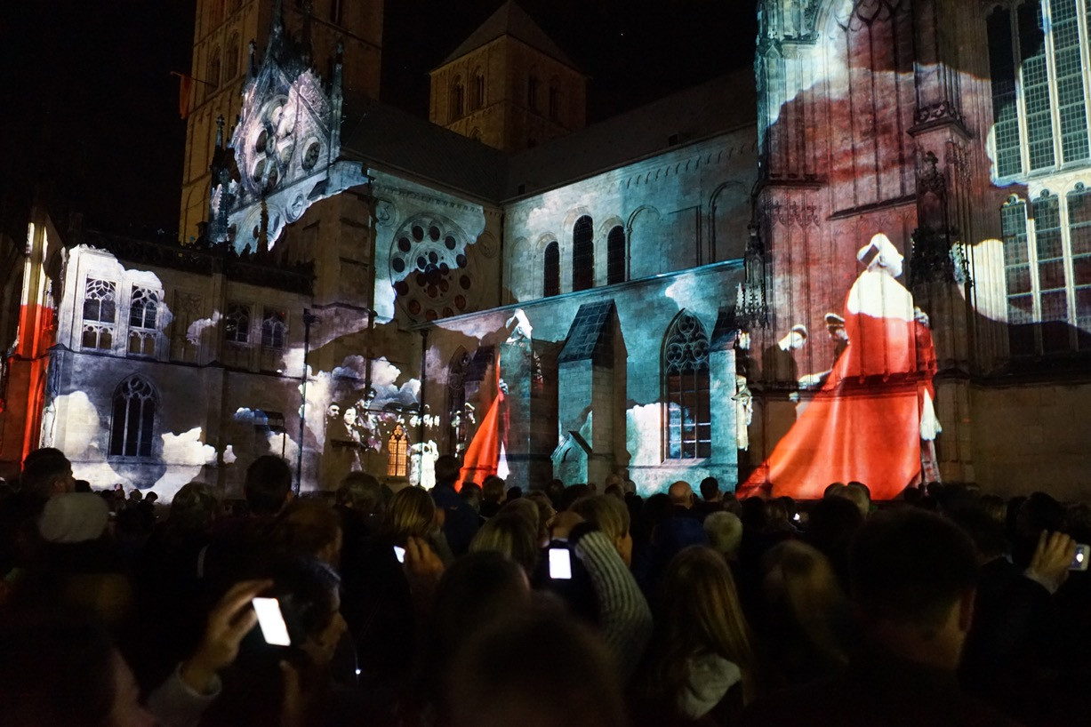 Lichtprojektion auf den Paulusdom während der "Son et Lumière"-Show anlässlich des Domjubiläums.