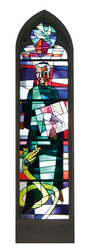 Fensterbild (vor 1960), von Helmut Gockel in der Heilig-Kreuz-Kirche.