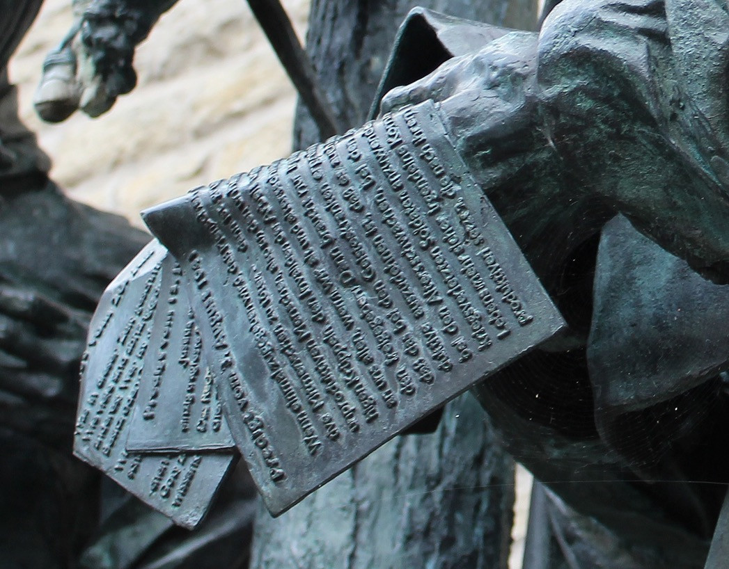 Bronzeplatten, die um das Standbild im Boden eingelassen sind.