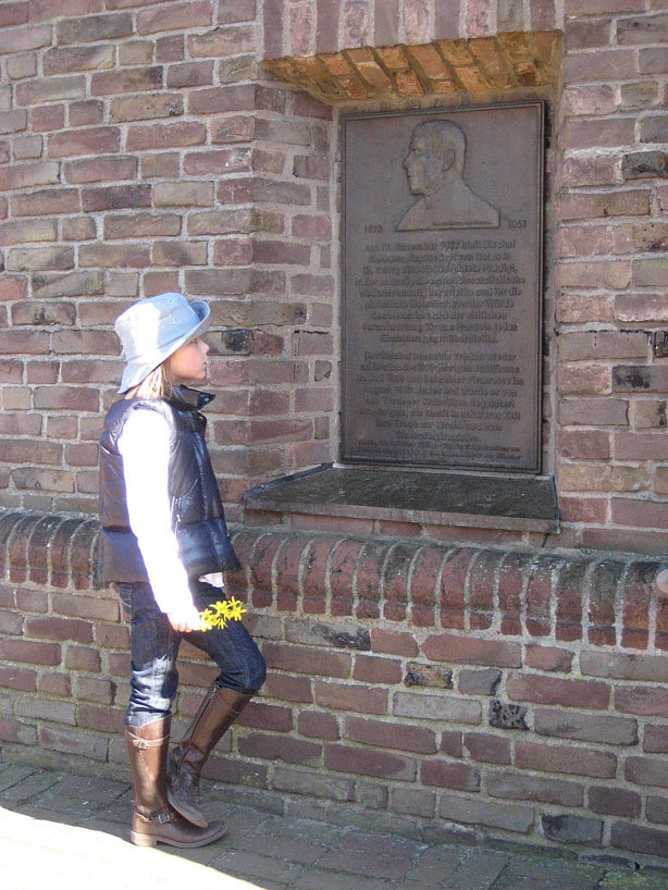 Gedenkplatte an der Pfarrkirche St. Georg, angefertigt zur Seligsprechung 2005.