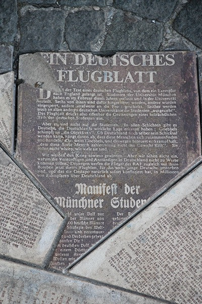 Hier an der Ludwig-Maximilian-Universität in München studierten Hans und Sophie Scholl, Christoph Probst, Alexander Schmorell und Willi Graf. Kurt Huber war hier als Professor für Philosophie tätig.