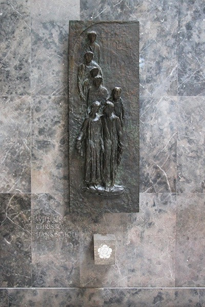 Im Lichthof erinnert seit 1953 ein Bronzerelief an Willi Graf, Kurt Huber, Hans Leipelt, Christoph Probst, Alexander Schmorell, Hans und Sophie Scholl.