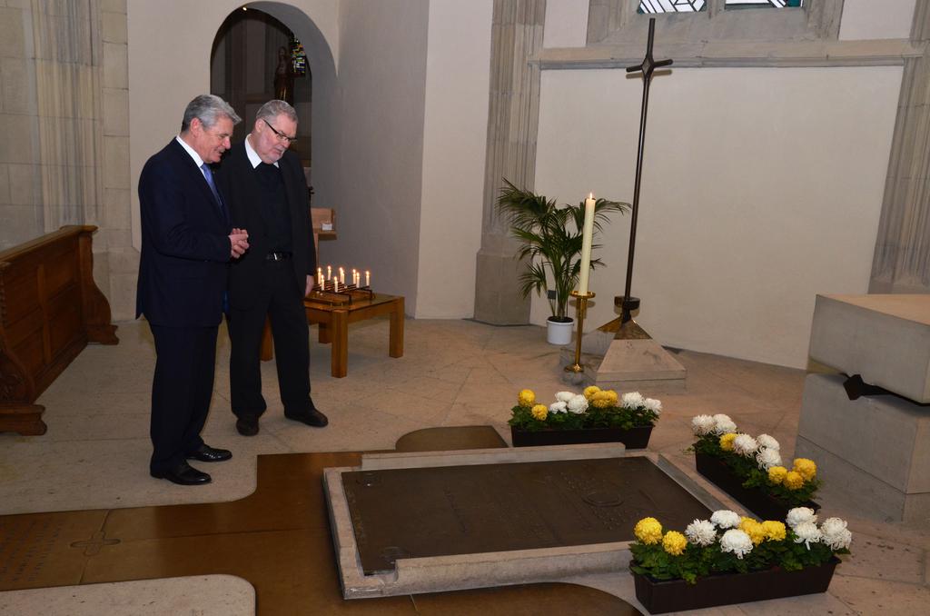 Während seiner Mittagspause hat er "spontan und abseits des offiziellen Programms" das Grab von Clemens August von Galen "wegen seiner großen Bedeutung" besucht und dort im stillen Gebet verharrt.